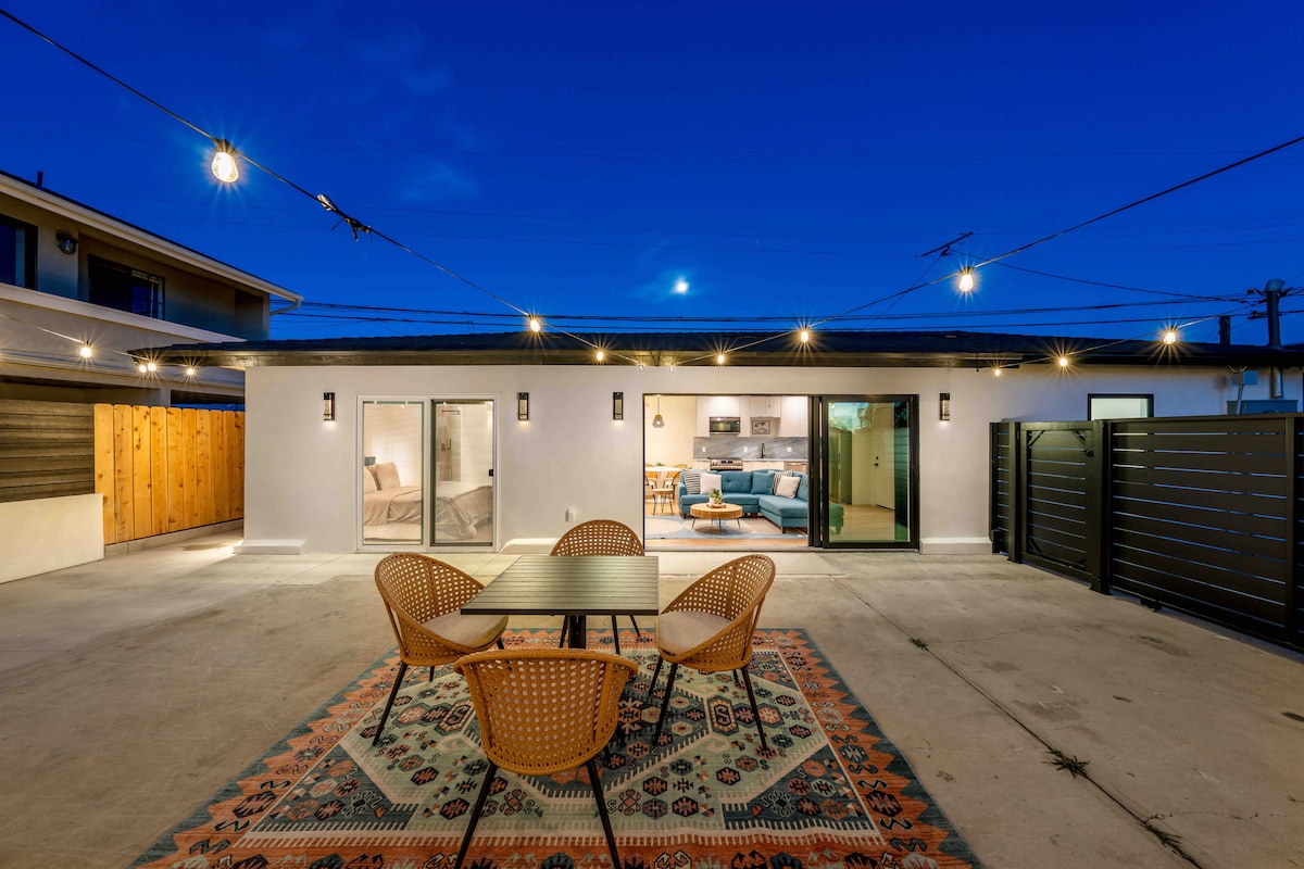House with Full-Size Car Garage, AC, private gas camping-style Fire in the Yard, 2 Patios, 2 Indoor Gas Fireplaces, Grill, & Laundry. 3 Bedrooms, 2 are primary with bathrooms, one with fireplace & kitchenette. Fully equipped Kitchen with outdoor Grill, just off the Dining area. Office Space plus fast 3 hub WiFi-6 coverage everywhere. 50 steps from the Beach or the Bay. Short ocean walk to PB with tons of restaurants & boutiques. Yelp lists 86 restaurants with 4-star+ reviews within easy walk.