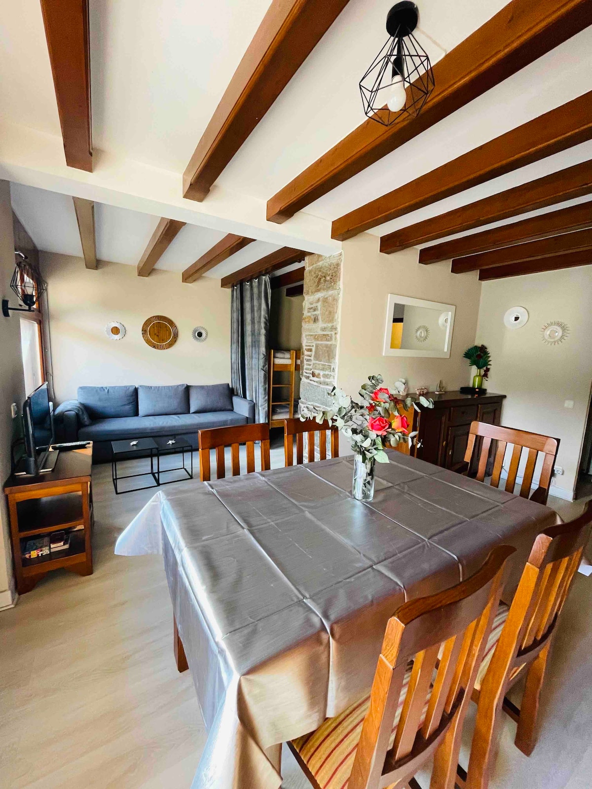 Proche des Pyrénées au cœur d’un village paisible, corps de ferme entièrement rénové associant charme de l’ancien et modernité. Maison attenante à une partie indépendante que nous habitons. grand séjour de 75 m² avec cuisine équipée et terrasse couverte avec plancha. Au rez-de-chaussée 3 chambres avec dressing et TV au plafond. Salle de bain avec douche italienne et baignoire balneo . Sèche-linge, lave linge et frigo. Terrasse extérieure avec jacuzzi!! Piscine avec 2 bassins!! FIBRE HAUT DEBIT
