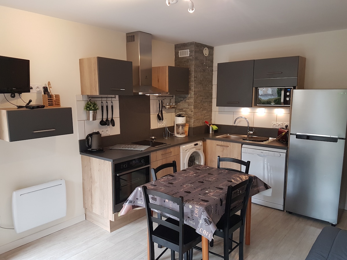 5 mm à pieds du téléphérique et du centre ville Parking privé, local ski et local vélo 1 chambre, 1 séjour avec cuisine équipée et canapé 1 grande entrée avec 2 lits superposés de 90cm Salle de bain et wc séparé TV, Nespresso, cafetière filtre, grille pain, bouilloire Linge de maison non fourni Arrêt navette pour les œufs devant la résidence Location à la semaine pendant les vacances scolaires (uniquement en période hivernale). Ménage à effectuer en fin de séjour par le locataire