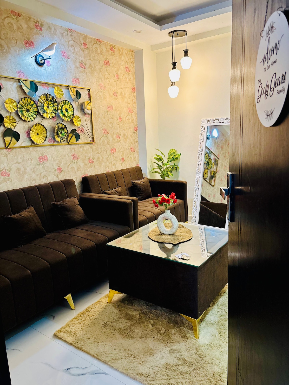 Premium 1BHK Service Apartment in Sector 43, Gurgaon with AC in living room & bedroom, plus a kitchenette with induction, microwave & cutlery. In a posh area, walking distance to Gold Souk Mall & Shalom Hills School, 2.2 km from Millennium City Centre Metro & 2.1 km from Fortis Hospital. Foreign guests are welcome. Early check-in will be subject to availability and chargeable Rs.500 as well as late checkout will also be the same with ₹500 added for every 3 hrs thereafter.