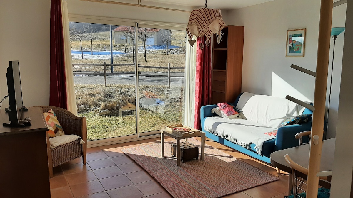 Situé en pleine nature propice à la détente. Déco zen et épurée. Le jacuzzi eau à 38°(marque USA-Softub) est ouvert toute l'année (de 10h à 21h, règle de bon usage) et un sauna ( 17h30 à 21h) à deux pas, accès compris dans le prix de la nuitée. Logement idéal pour accueillir un couple ou deux ami(e)s (lits séparables). Le petits-déjeuner d'accueil le 1er matin compris dans le prix du séjour. Pas de frais de ménage supplémentaire. À proximité du village et des commodités. Stations de ski proche.