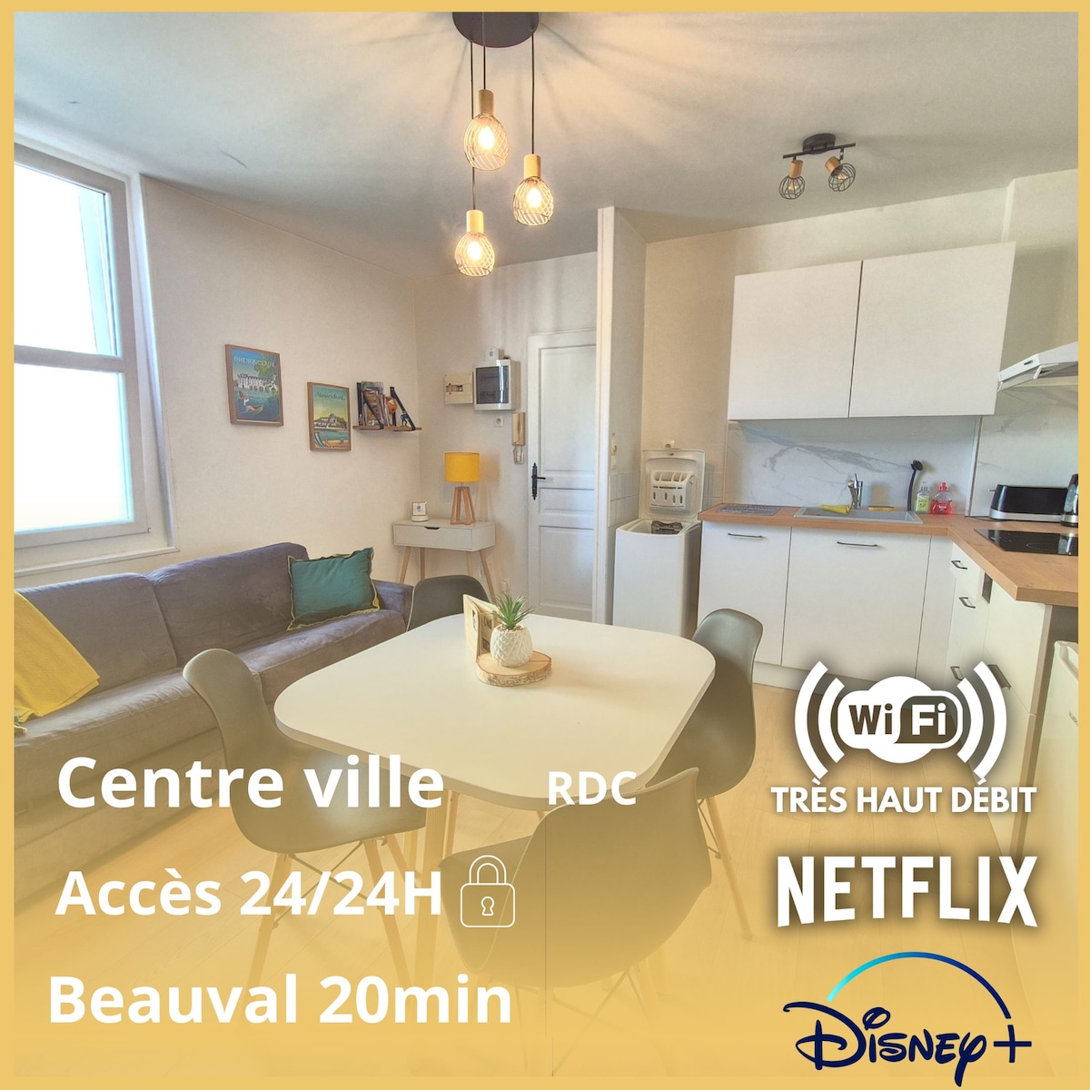 Appartement T2 de 33m2 en RDC (1 marche) Centre de Montrichard. 🏖️Plage 🐼Le Zoo de Beauval à 20min 🏰Proche des Magnifiques Châteaux♠ (Chenonceaux, Blois, Amboise, Cheverny, Monpoupon, Etc...) 🚲Location de vélos en face Tous les commerces sont à proximité (à pied) ♠TOUT EST FOURNI : (Draps, oreillers, serviettes) Support vélo dans le hall Séjour/Cuisine ouverte avec Canapé convertible 2 personnes 1 chambre avec lit (140 x 200) literie EMMA et une Salle d'eau Arrivée en toute autonomie