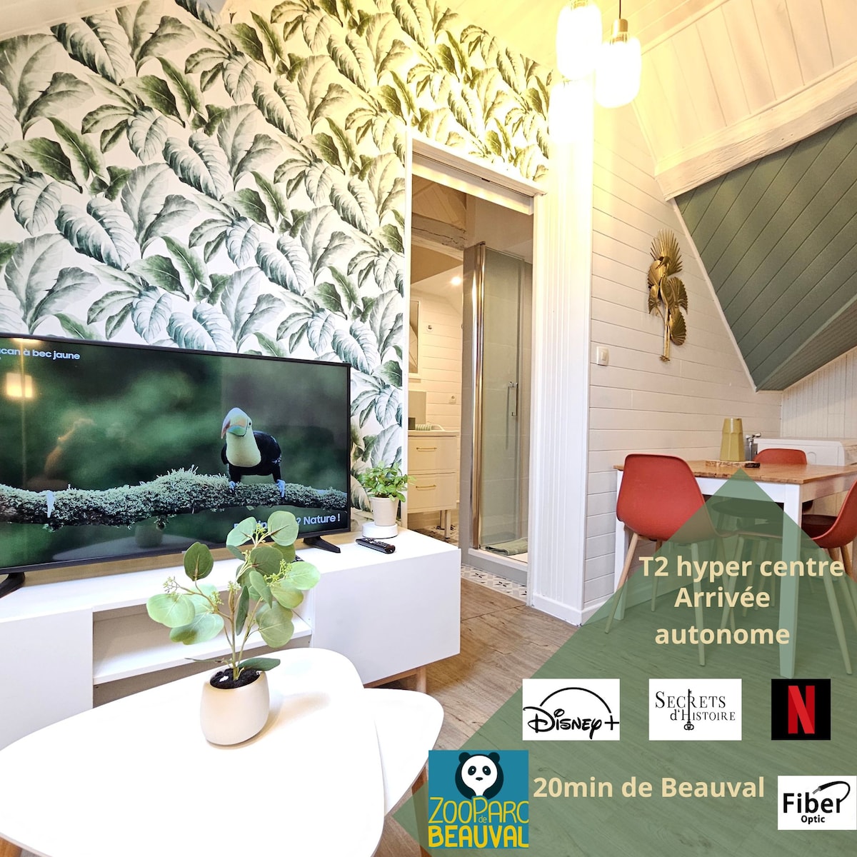 Appartement T2 de 39m2 au 2ème dernier étage sous comble avec clim Centre de ville. 🛏️Matelas haut de gamme Emma 🏖️Plage 🐼Le Zoo de Beauval à 20min 🏰Proche des Magnifiques Châteaux♠ (Chenonceaux, Cheverny,, Etc...) 🚲Location de vélos en face Tous les commerces sont à proximité (à pied) ♠TOUT EST FOURNI : (Draps, serviettes) Support vélo dans le hall Séjour/Cuisine ouverte avec Canapé convertible 2 personnes 1 chambre avec lit literie EMMA et une Salle d'eau Arrivée en toute autonomie