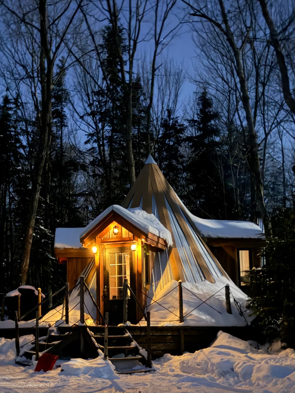 Tipi forestier en bois dans l’érablière