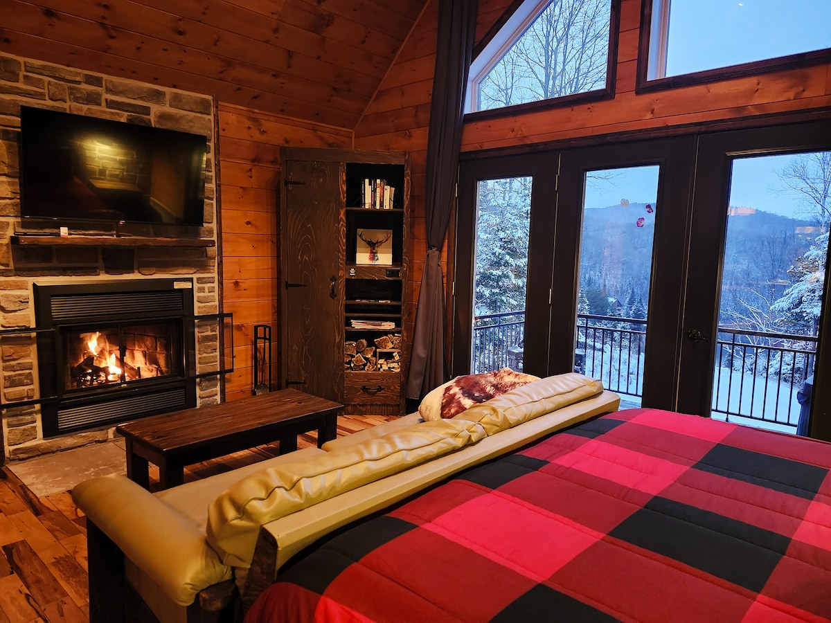 Petit chalet romantique vue lac pour 2 adultes*. Relaxez dans le spa privé ou détendez-vous devant les flammes du foyer. Vous pouvez vous baigner à la piscine chauffée réservée aux couples ou découvrir le lac en kayaks, pédalos, chaloupe et en ponton ($) (permis d'embarcation nécessaire). L'hiver, glissez ou faites de la randonnée en raquettes! La piscine et les activités sont partagées. * Afin de préserver le romantisme, les enfants et bébés ne sont pas admis sur ce versant de la montagne.