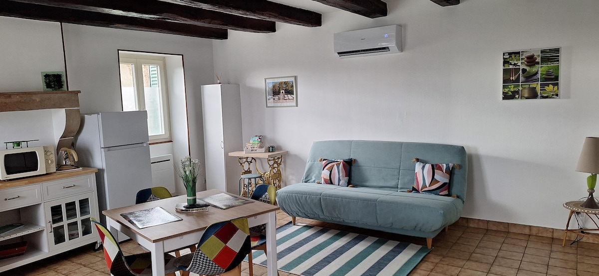 Charmante maison de village dans le centre de la France, à 15 min de l'autoroute A71. Comprend une cuisine équipée, salle à manger, salon avec cheminée, télé et canapé convertible pouvant accueillir 2 personnes, 1 chambre et salle de bain. Cour extérieure avec barbecue. Idéalement située pour explorer les environs. Vous trouverez également une boulangerie, une épicerie et un bar tabac à votre disposition. Possibilité de demander un lit bébé. Le linge de literie et de toilettes sont fournis.
