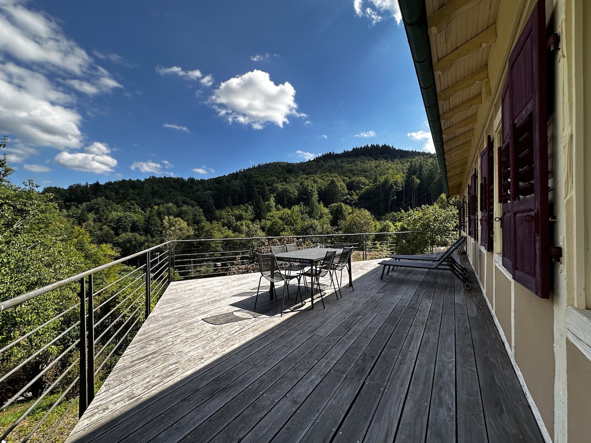 Découvrez le charme de ce chalet montagnard et sa magnifique terrasse au fond d'une vallée heureuse sans issue , dans le parc naturel des Ballons des Vosges 😊 5 jours minimum nous habitons loin et ne sommes pas en mesure de gérer pour des séjours courts