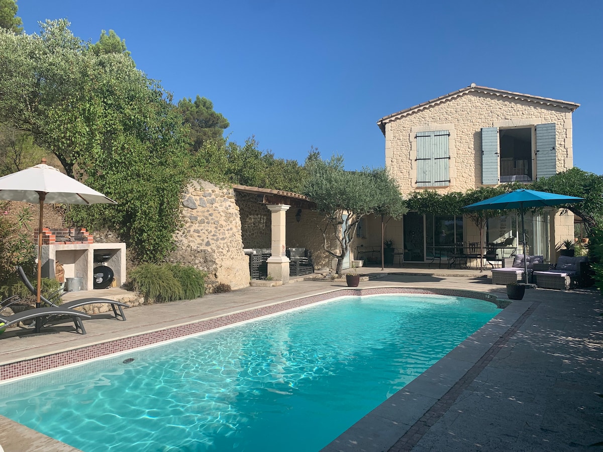 Your cozy getaway awaits in Saint Andre de Cruzieres at this luxury apartment. This gorgeous space features 1 bedroom with a luxurious king size bed, a modern bathroom with Italian shower, fully equipped kitchen and essential amenities like AC and heating, bathrobes, a washing machine, and a dining area. A hectare of garden is yours to wander, scattered with umbrella pines, cypress and olive trees. You can float in the pool (12x6) or hone in on the honesty bar in the pool house.