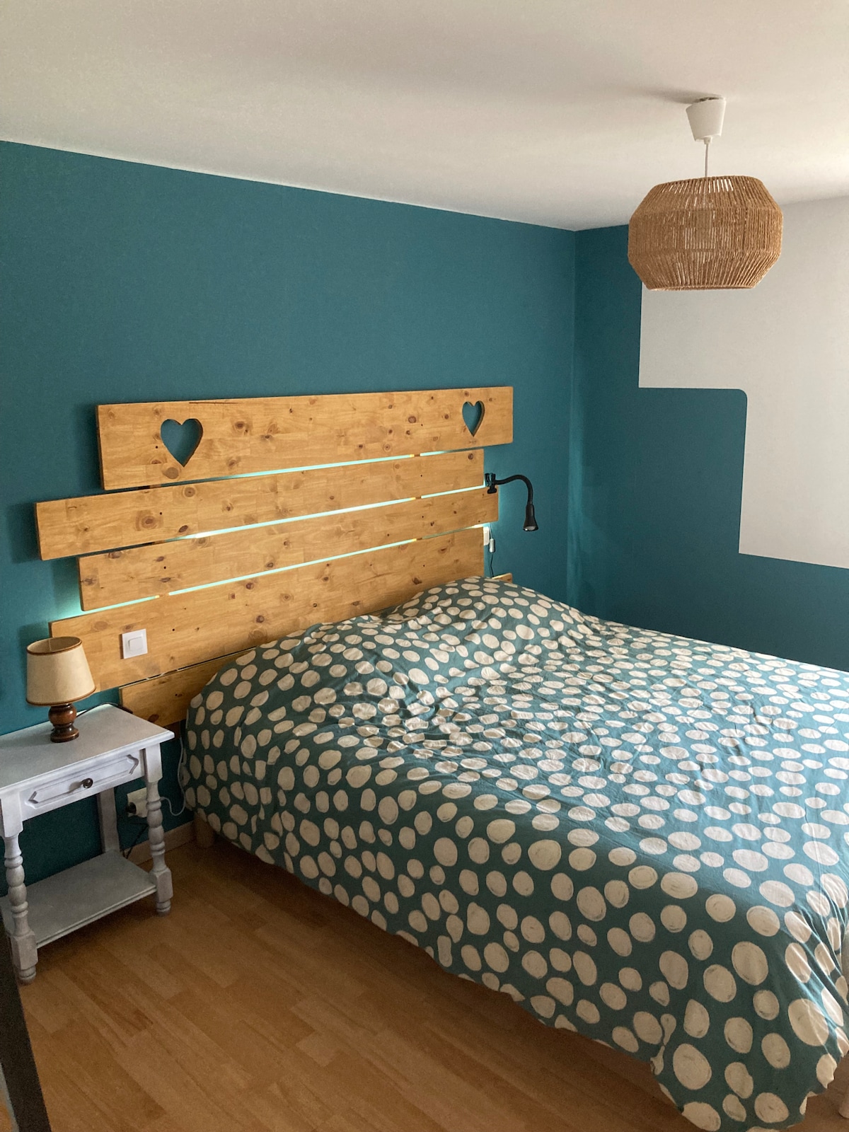Intimité assurée avec cette sympathique chambre indépendante, bien isolée du reste de la maison, avec entrée commune qui dessert la chambre, la salle de bain, et les wc qui sont cela dit privatifs. Même si quelques jours sont indisponibles, on peut tout de même trouver des solutions intéressantes pour vous. Lit 2 places Bouilloire Micro onde Réfrigérateur TV Wifi Si le séjour dure plusieurs jours possibilité de laver du linge. Eventuellement un accés garage pour les motos ou vélos