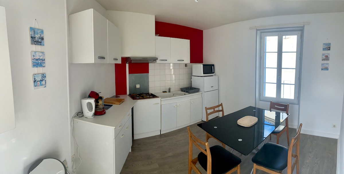 Appartement 55m2, situé en plein centre de Cozes. Tous commerces à pied : boulangerie, tabac, super U, café, restaurant. Charmant T2 composé d'une chambre, d'un petit salon cosy avec un canapé convertible. La salle à manger dispose d'un coin écran support USB. La cuisine est toute équipée, four, machine à laver, bouilloire, machine à café, micro onde, frigo. Salle d'eau avec douche et WC. Cozes, village paisible situé à 15min des plages de Meschers et de St Georges de Didonne, à 20 min de Royan.