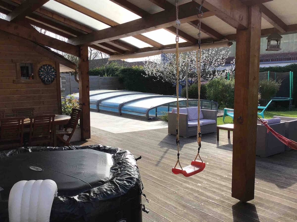 Petit Logement de 45 m2 avec petit jardin et spa gonflable pour un petit moment détente. Cuisine toute équipée Une chambre avec lit double et une avec lit simple Idéal pour couple ou famille avec 1enfant Sans vis à vis et au calme