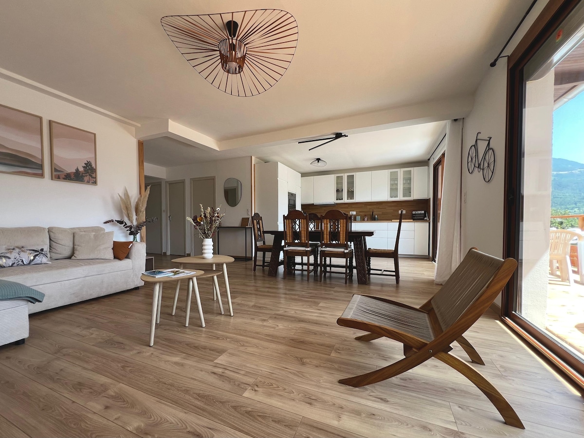 Magnifique maison entièrement rénovée. Tout a été refait : façade, toiture, terrasse, fenêtres, volets, balcon, escalier extérieur et véranda avec baby-foot, table ping-pong Jacuzzi . Cuisine neuve avec lave linge, lave vaisselle, four, réfrigérateur congélateur, plaques à induction. Douche jets massants. Située au cœur de ville à 400 m de la gare Sncf, 10 min à pied du départ dû télécabine du Prorel, à côté de l'arrêt de bus et d'un supermarché. Beau jardin . Salon de jardin. Très belle vue.