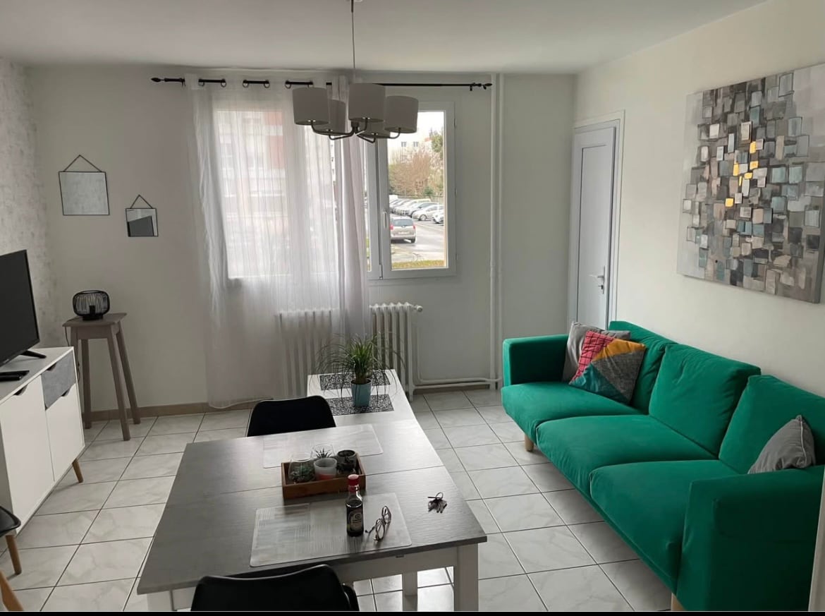 Superbe appartement situé RDC avec escaliers , avec 2 chambres, entièrement rénové , idéal pour accueillir jusqu’à 4 personnes. - Proche du centre ville à 9min en voiture - Parking gratuit place réservé - Proche de tout commerce, boulangerie, boucherie. - Résidence calme le logement : - TV - Canapé - Table à manger 4 places - Cuisine entièrement équipée - 2 chambres avec lit 2 places et grand placard - Douche - Lave linge - Linge de lit - Linge de toilette
