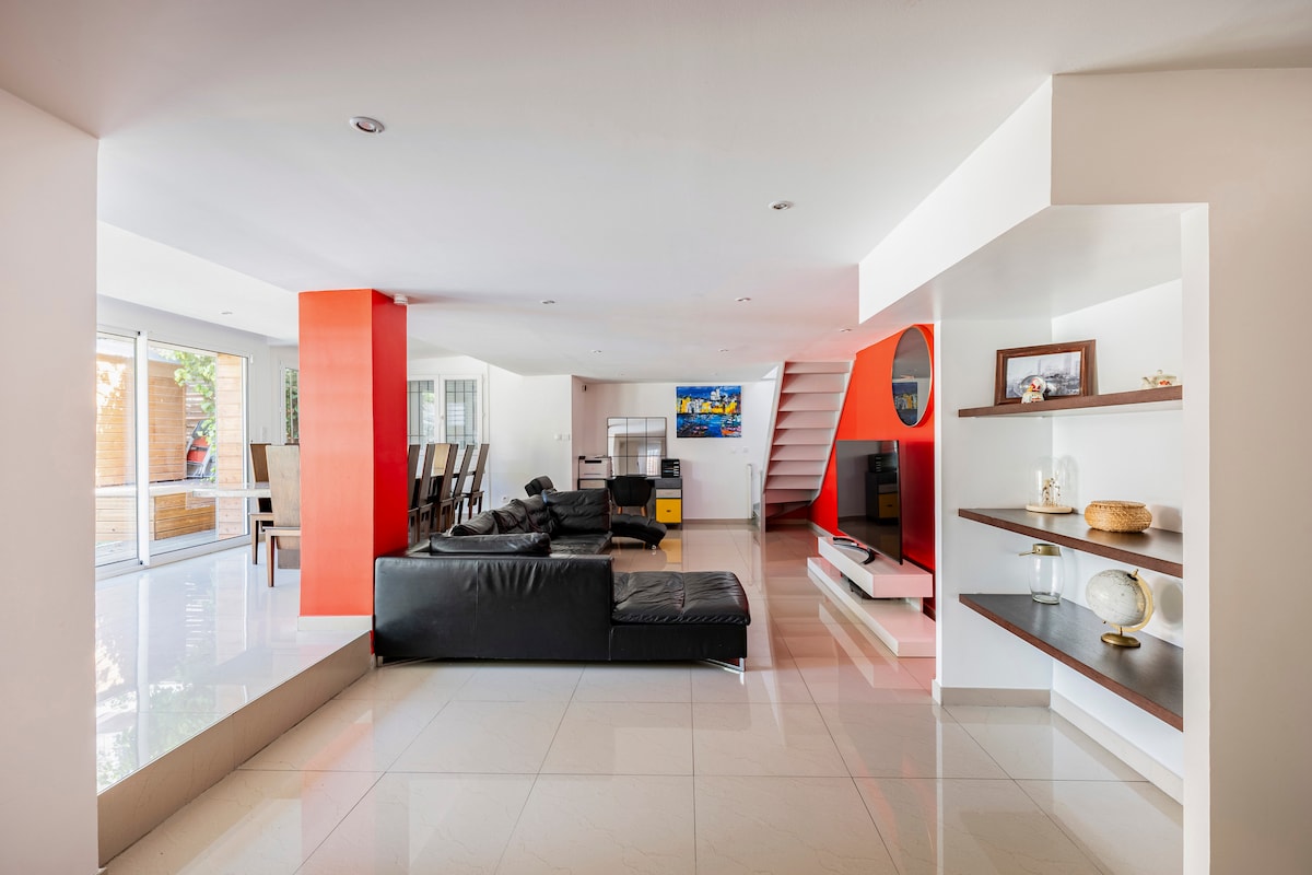 → Terrace with panoramic sea view → Renovated by a well-known architect → Modernly equipped : air conditioning in every room, fully-equipped kitchen → 4 bedrooms with queen-size beds (160 cm x 200 cm) and 4 bathrooms → Sauna and spa → Located 10 minutes from the calanques → 3 minutes from hiking trailheads → Direct access to the beach → No overlooking neighbors, very quiet → Bus just a short walk away → Private parking available next to the house