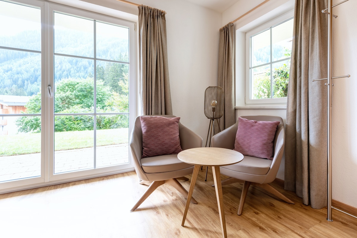 A beautiful modern flat with large windows and a private terrace (with bbq and a Finnish sauna) and entry looking towards the best view in St.Anton. Ski-in / ski-out via field, snow conditions permitting for advanced skiers only, and breathtaking hiking / biking trails starting behind the house. - NEW BEDS AVAILABLE IN BOTH BEDROOMS - ONLY SUNDAY - SUNDAY BOOKINGS AVAILABLE IN 25/26 WINTER SEASON; OUTSIDE OF SEASON, PLEASE MAKE A REQUEST