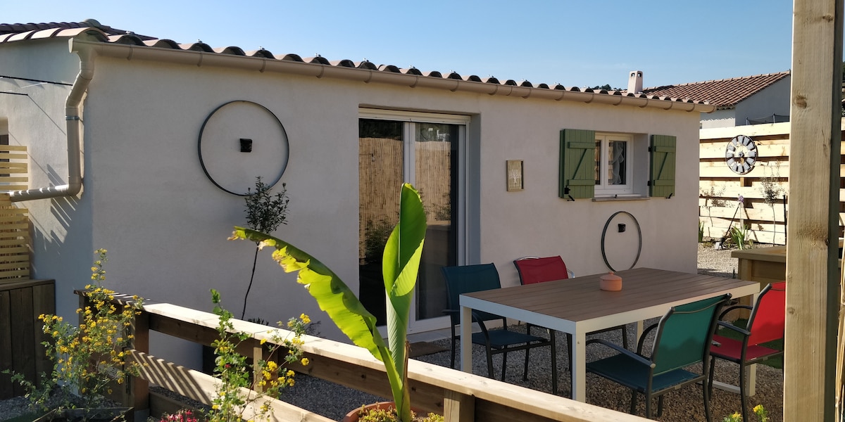 Maison insolite au fond des bois. En Provence verte, lovée entre forêts, oliviers, garrigue et vignes. Feu de bois en hiver, piscine, terrain de pétanque, petite sieste, moment de méditation, de yoga ou lecture sous la pagode dans la forêt. En pleine nature dans un environnement exceptionnel. Cabanon tout confort et climatisé, au calme pour se ressourcer et se déconnecter. Stationnement. Clôture pour nos amis les animaux. Vacances idéales pour visiter des lieux magnifiques.