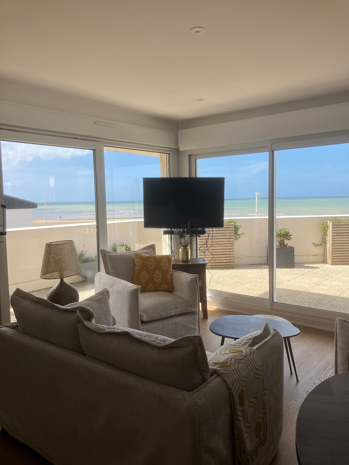 Joli F2 refait à neuf avec terrasse et jardin à 50m de la plage, accès direct au club de voile, location de paddle.. piste cyclable pour longer les plages du débarquement et rejoindre la ville de Caen par le canal. Très proche supermarché et nombreux commerces de proximité (lavomatique, cordonnerie...) sans oublier le casino, la thalasso et son spa accessible à la journée, centre équestre etc... En voiture : 15min de Caen, 2h00 de Paris. Arrêt de bus à proximité.