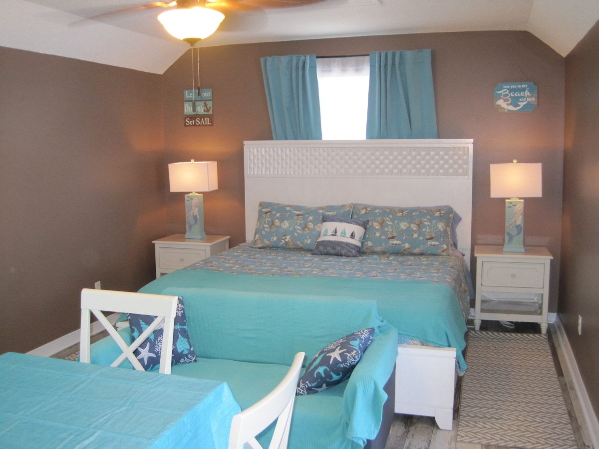 6 BLOCKS to BEACH, off of the intercostal! Studio apartment, sleeps up to 4. Quiet neighborhood, close to all. Several restaurants/shops within walking distance. Beach bikes included, perfect for bike rides along the beach. Private entrance off of porch, which includes chairs to relax in, beach toys, towels, chairs. *yes, we are pet friendly, however, ONE PET PER STAY WITH APPROVAL *also, we cannot split weekends, so please book accordingly, fridays and Saturdays booked together