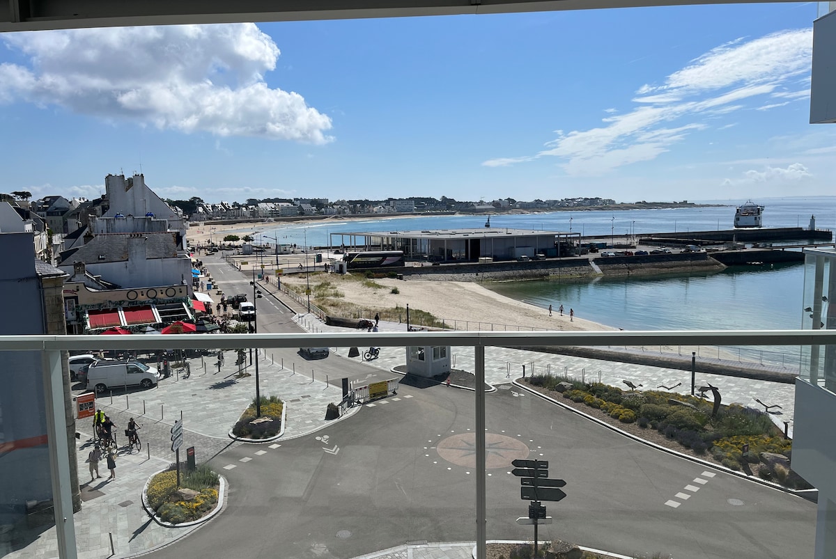 Appartement F2 de 42 m2 avec terrasse de 25 m2,sans vis à vis,plein sud dans une résidence calme et sécurisée.Tout confort,cuisine aménagée,WC séparé,place de parking privée.Couchage pour un bébé ou un jeune enfant.Le linge de maison est fourni .WI-FI.3 mn à pieds de la grande plage, Casino Jeux, piscine.A 2 mn en voiture de la Thalasso.Proche du centre ville et de l'embarcadère pour les îles.Local vélos.Ménage non facturé mais 30 €,à régler à la remise des clés si vous ne voulez pas le faire.