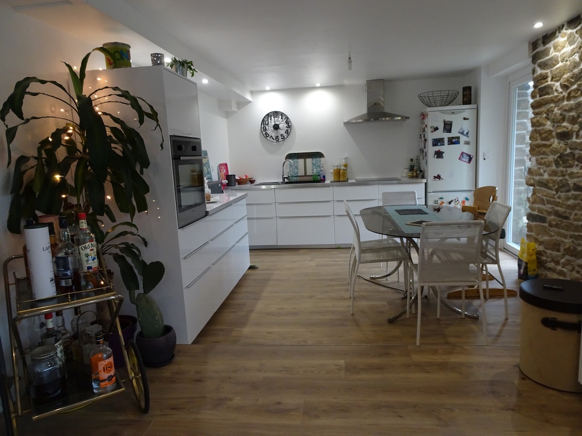 A proximité immédiate du port et du centre ville de Vannes, notre maison date de 1870, inscrite au patrimoine de la ville, elle a été entièrement rénovée en 2020. Alliant le charme des vieilles pierres et des enduits à la chaux, la chaleur du bois et le caractère de l acier, notre logement offre aussi tout le confort de la modernité.