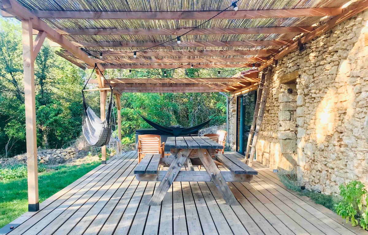 Welcome to L'Ours et Son Petit Oiseau (The Bear and his Little Bird), set in 5 acres with views over a wild valley, run with deer and wildlife. You could choose to sit, unwind, cool off in the crystal clear pool, relax in a hammock, soak in the wood-fired hot tub or get to know the many animals who also call this place home. Cicadas and birds sing to the setting sun, and there's not a human soul for miles...