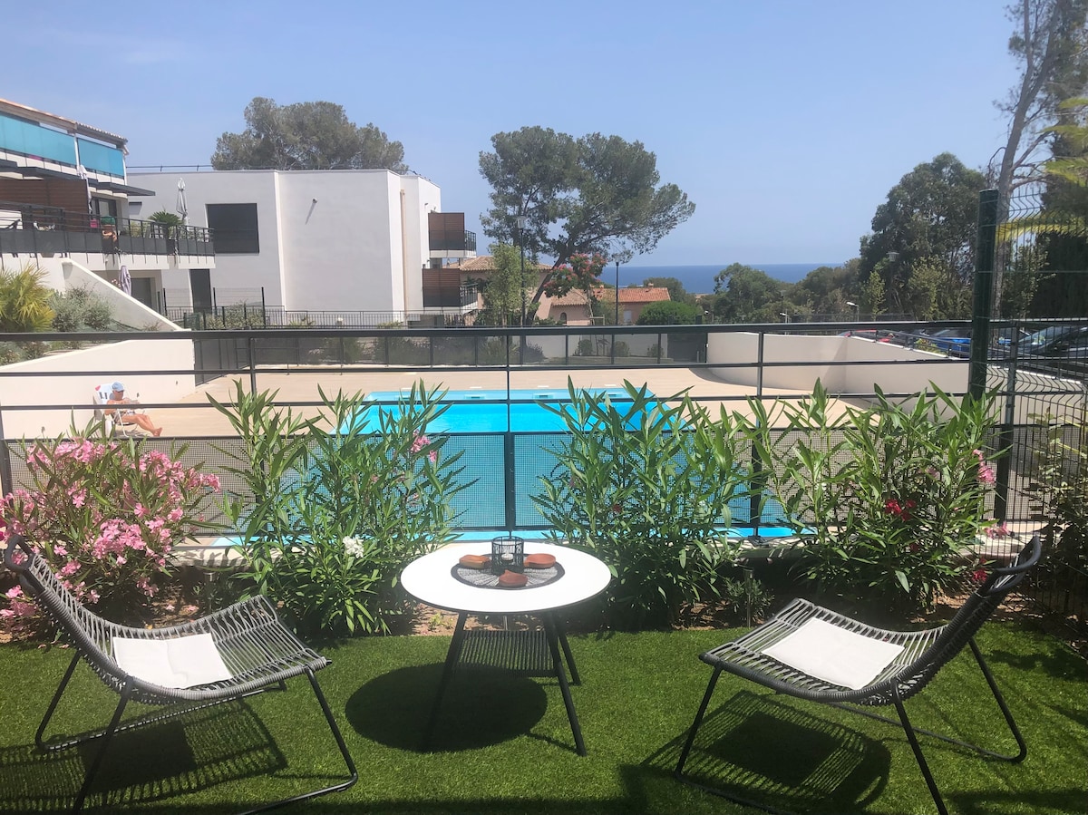 Superb T2 quiet, with swimming pool and sea view