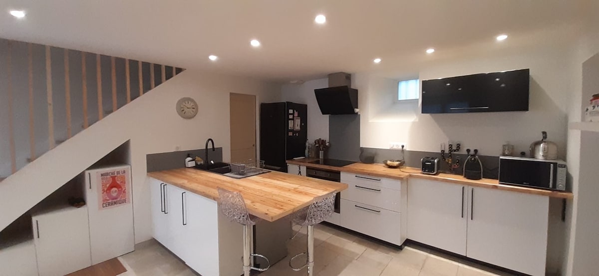 Logement en RDC, coté jardin, naturellement climatisé en été . Lit pour bébé à disposition. Espace bureau. Accès facile et espace de stationnement dans la cours. Proche de toute commodité notamment une supérette. A deux pas du centre ville . Situé sur un axe routier stratégique pour toutes les destinations. Heure d'arrivée et de départ très flexible, voire en totale autonomie , il suffit juste de prévenir.