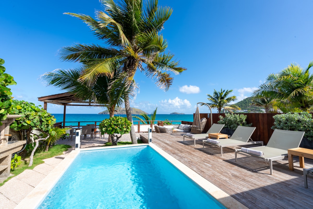 Villa récente vue mer située à proximité immédiate de Gustavia et St Jean. Elle se compose d’une chambre parentale avec sa salle d’eau, une deuxième chambre et une salle d’eau viennent compléter le tout. La cuisine est ouverte sur la salle à manger. Le salon est séparé et spacieux. Les espaces sont liés par une grande terrasse avec un coin salon, une table à manger extérieure et une piscine chauffée. Un parking privé permet de se garer en tout sécurité.