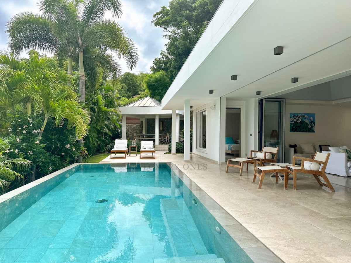 Toute nouvelle en location: Juillet 2023. Excuse My French se situe à 5 minutes à pied de la plage de Flamands. La villa propose une prestation unique où les espaces intérieurs s'allient parfaitement à un jardin tropical. Sa piscine, et ses espaces extérieurs sont conçus pour faire de votre séjour qu'il soit en famille ou entre ami, un moment agréable et convivial dans ce logement paisible et central.