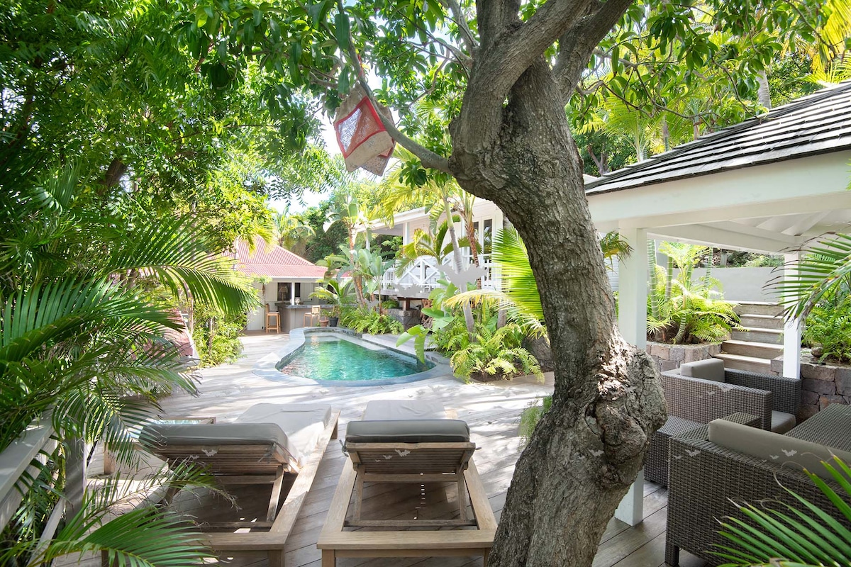 Nichée dans un écrin de verdure à seulement 5 minutes à pied de la célèbre plage de Saint-Jean, cette villa incarne l’art de vivre à la caraïbe avec élégance et raffinement. Vous serez séduit par l’atmosphère du jardin tropical. Le salon lumineux s’ouvre sur une terrasse en bois exotique et une piscine. La cuisine entièrement équipée allie design contemporain et fonctionnalité. Les chambres et suites disposent de literie haut de gamme. La maison est entièrement climatisée.