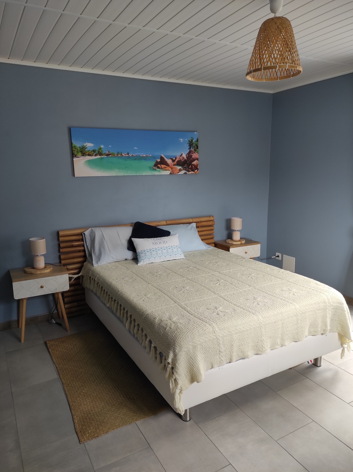 Les 2 chambre sont Situés à la Plaine des Palmiste vous y trouverez le calme et la sérénité. Chambre 1 : double conçu avec goût dans le moindre détail pour que vous passiez un séjour agréable, elle est équipée d'une literie de haute qualité. L'ameublement conçu exclusivement en bois de tamarin, la salle de bain possède une baignoire et une douche Italienne. Chambre 2 est accessible au personne à mobilité réduite, avec la même qualité de literie, et d'ameublement. Tarif pour 1 chambre.