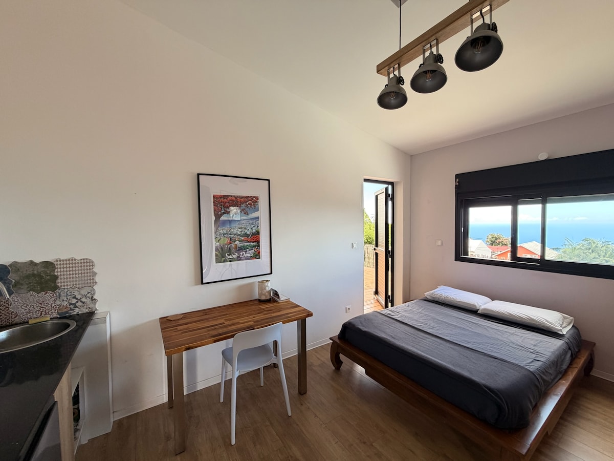 Profitez d'un logement climatisé indépendant, propre et neuf, au rez-de-chaussée de notre villa. Proche de toutes commodités, à l'entrée de la ville de St Benoît. Le studio comporte une petite cuisine fonctionnelle, une grande salle de bain, un lit 140x190cm, tous les équipements de cuisine. Son entrée personnelle vous permettra une totale autonomie lors de votre séjour. Sa terrasse offre une vue imprenable sur la ravine de St Benoît, et sa végétation dense et luxuriante.