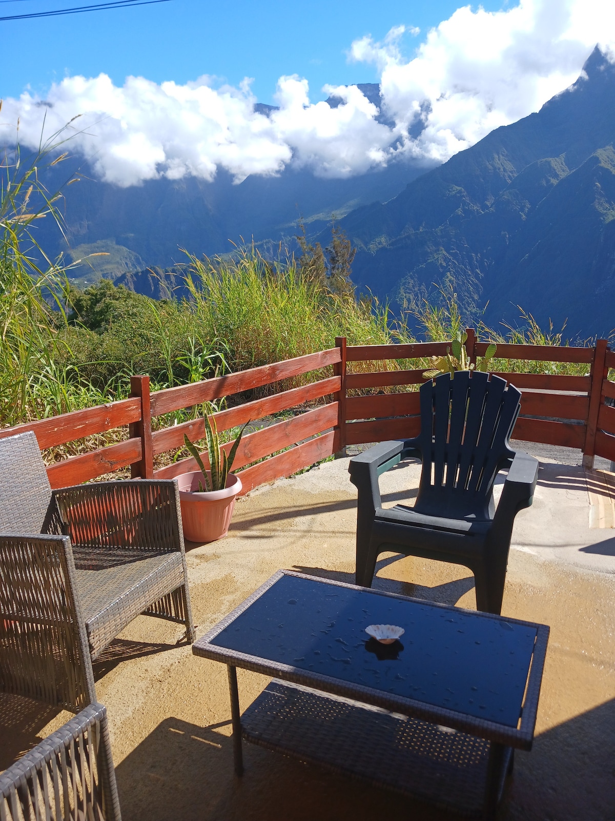 Bienvenue au Chalet le manguier de pépé Cette maison, construite il y a maintenant dix ans, était notre maison . Nous sommes heureux aujourd'hui de pouvoir vous y accueillir. Idéalement située dans un quartier paisible de l'Entre-Deux, cet endroit sera le lieu idéal pour vos moments de détente et de découverte en famille! Amis marcheurs et randonneurs, vous aurez l'embarras du choix pour de nombreux départs de sentiers, aussi bien pour les débutants que pour les plus aguerris !