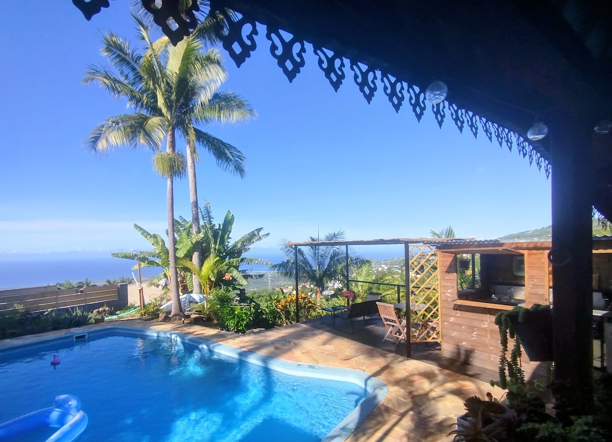 Bras-Panon:带泳池的景观房,可容纳1-4人。