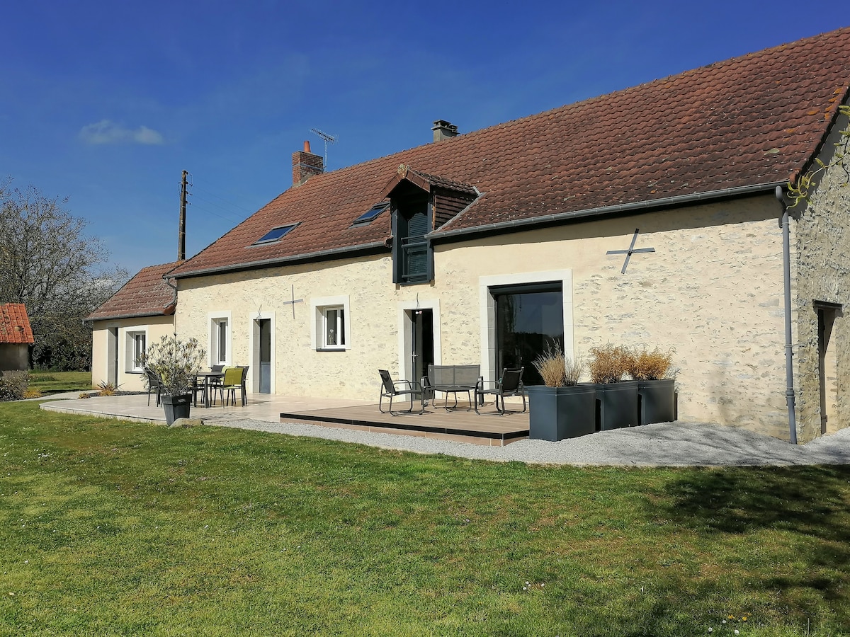 Bienvenue à la ferme! Nous vous accueillons dans la maison spacieuse, confortablement équipée, entièrement rénovée, au cœur de la vallée du Loir, au calme.Vous trouverez aux alentours de multiples activités ( sportives, détente, nature, randonnées, etc...) Zoo de la Flèche à 20 min, 25 min du circuit des 24H, 25 min des parcours de golf des 24H et de Baugé, château du Lude, Le Loir à vélo, le lac de Mansigné. Que vous veniez avec votre tribu, ou entre amis, vous vous sentirez comme chez vous !
