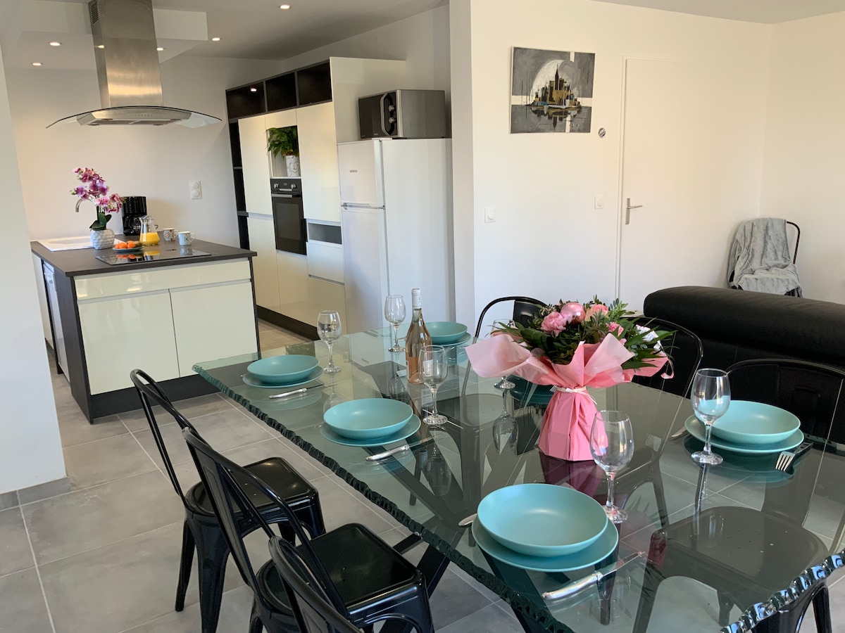 Rez-de-chaussée de 90 M2 indépendant d'une maison. Situé à 12 minutes de l'aéroport Saint-Exupéry, 18 minutes du Groupama stadium, 22 minutes d'Eurexpo, 20 de LDLC Arena et 25 minutes de Lyon. Arrivée et départ autonome via boîte à clé, idéal pour une arrivée tardive ou un départ matinal. Le logement est entièrement neuf, équipé de la climatisation, et dispose de 3 chambres, d'une cuisine équipée ouverte sur séjour, ainsi que d'une terrasse.