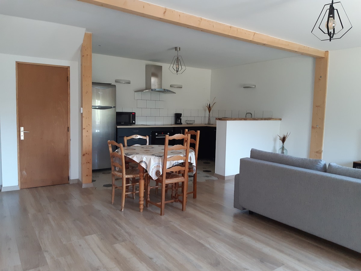 Cet espace de ressourcement est situé au calme dans le parc des Écrins avec une magnifique vue dégagée sur les montagnes environnantes depuis la baie vitrée et la terrasse. Nous avons conservé le charme de l'ancienne charpente. La poutre centrale est à enjamber pour passer de l'espace jour a l'espace nuit.