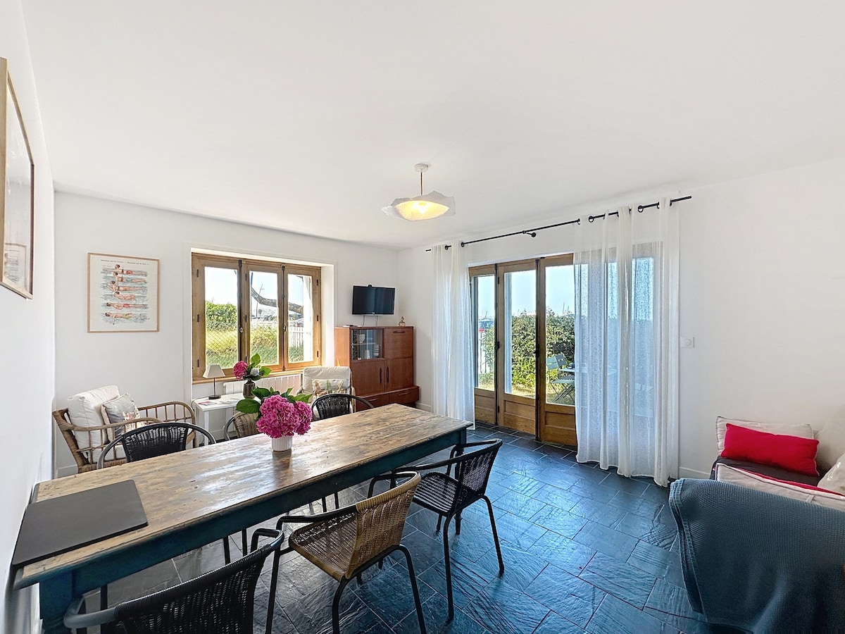 Bel appartement entièrement rénové (70m2), sur la digue, lumineux avec vue mer dans toutes les pièces. Location à la semaine pour 3 personnes en période de vacances. Au rdc : 2 chambres avec 3 lits Grand séjour et salle à manger avec Véranda vue mer et jardin privatif, TV et accès internet. Cuisine américaine entièrement équipée. Salle de bain de standing Accès direct à la plage Proximité à pied des commerces et marché (5min) GARAGE privatif sur réservation en option (12€/jour)
