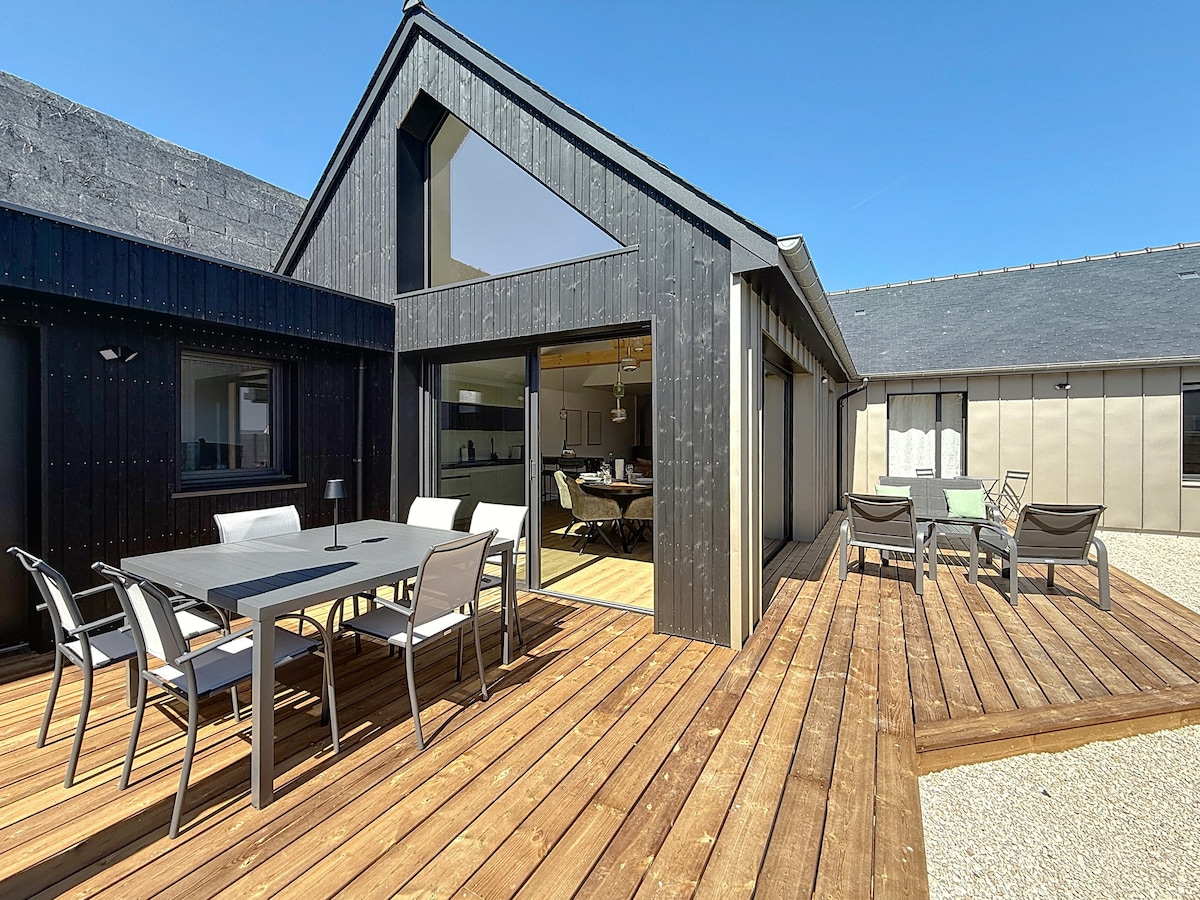 Vous êtes littéralement sur la plage : la baie vitrée du salon donne directement sur le sable. Vue mer panoramique unique. Vous cherchez une localisation exceptionnelle avec une vue imprenable cette maison familiale est faite pour vous ! Maison équipée, capacité d’accueil de 1 à 7 personnes. 2 nuits min en basse saison, 5 nuits en juillet/août. Nous n'avons pas pu récupérer les avis précédents (4,9/5 avec 403 locations) mais avons à coeur de vous garantir la meilleure experience !