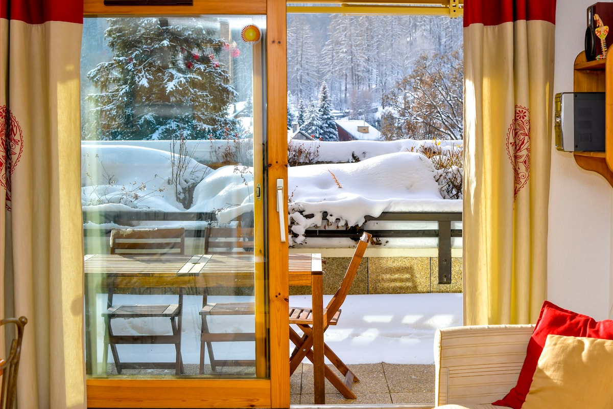 Pas sup ménage / produits d’accueil / idéalement situé avec balcon = top rapport qualité-prix / parking privé gratuit / navette station + commerces à 10 m Hiver : ski, surf, rando, raquettes, luge, chiens de traîneaux. Été : lac biotope à 2min à pied, rando, raft, vélo, trail. Toute l’année (intersaison !) : piscine, pharmacie, bar, resto, activités outdoor... Intérieur cosy, tout confort, déco chaleureuse, belle vue vallée, balcon. Petits + : Pdj courtoisie, Parking, Draps, Serviettes INCLUS.