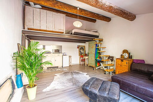A deux pas du vieux port, dans l'un des meilleurs quartiers de Marseille, loft de charme de 40 m2 entièrement rénové avec parquet de chêne, poutres apparentes, terrasse de 8 m2, équipé internet, machine à laver, etc... Situé au 1er étage, climatisation réversible, visiophone ... Supermarché, restaurants, commerces et parking public sécurisé (payant) à proximité...