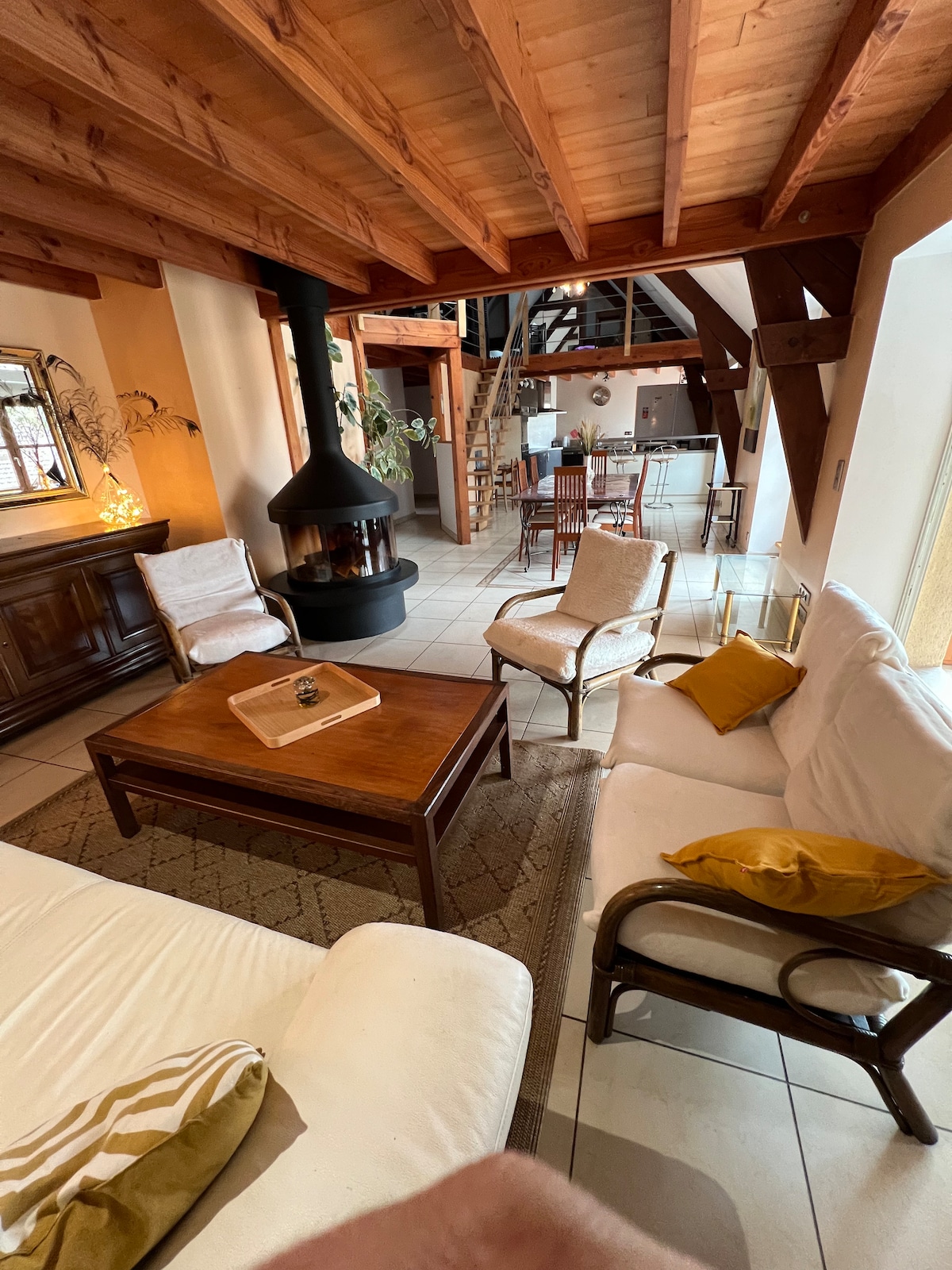 Charmante petite maison indépendante, comprenant 1 grande pièce salon avec canapé convertible, 1 cuisine toute équipée avec bar, four, lave vaisselle, frigo congélateur, micro-ondes, 1 chambre en mezzanine ouverte sur le salon avec 1 lit en 160, 1 salle d'eau avec douche et wc. Tv écran plat, lecteur dvd, chaine hi fi, jeux de société, livres, cd, dvd, lave- linge. WiFi Terrain arboré. Environnement calme et bucolique... Belle terrasse avec barbecue, salon de jardin. Lit fait à l'arrivée.