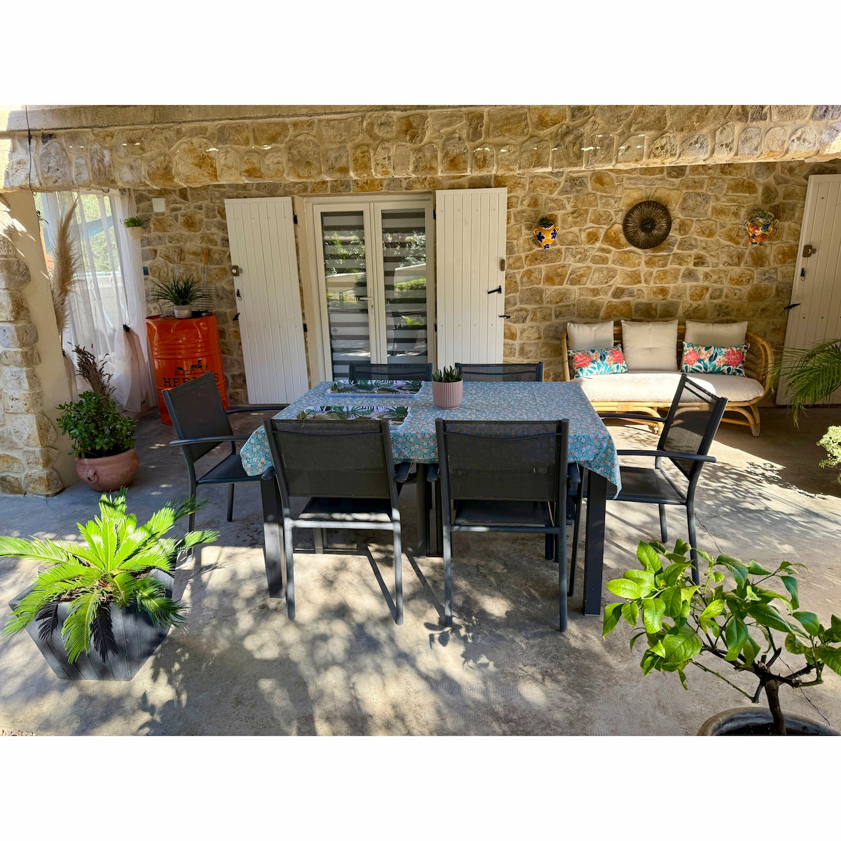 Notre jolie maison en pierres de 120 m2, récemment rénovée et climatisée, vous attend pour un séjour agréable. Belle terrasse avec salon extérieur, barbecue, table de ping-pong. La piscine de 3X3, attenante à la terrasse est parfaite pour se rafraichir, s'amuser et garder les enfants sous surveillance. Le logement dispose d'une connexion internet par fibre et d'un stationnement pour plusieurs véhicules. Les animaux de compagnie sont les bienvenus.