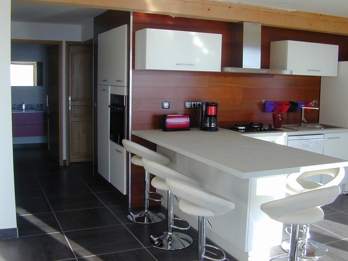 Quelle que soit la saison, venez vous ressourcer au cœur de l’Oisans dans un appartement de charme, situé au sein d'un hameau typique de montagne, à proximité de la grave des 2alpes et de l’alpe d’huez. Loin du tumulte des villes, profitez des grands espaces, de la nature, du calme et de son exposition plein sud, pour passer une agréable semaine. Arnaud et Laura seront heureux de vous accueillir dans ce bel appartement tout équipé de 40m2 avec sa terrasse exposée plein sud à 1300m d’altitude.