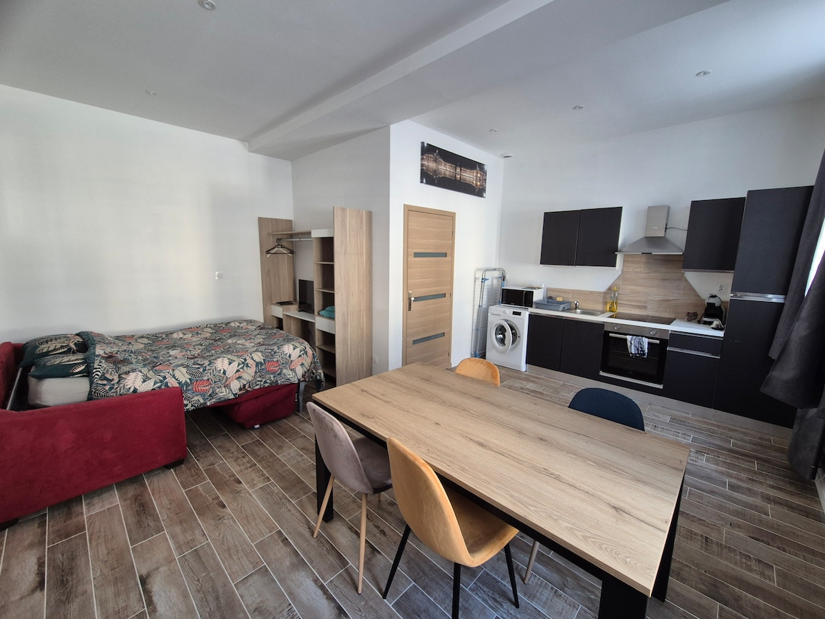 Au calme! "Le Logis Bellevue" a été aménagé dans notre maison typiquement Saint-Emilionnaise avec une entrée indépendante par une escalette! une terrasse privée avec vue panoramique sur la cité, les monuments, La vallée de la Dordogne, les châteaux et les vignobles prestigieux. A 15' de Libourne, 30' de Bordeaux et 1h30' de la Côte Atlantique. A 2 pas des commerces de proximité, des restaurants, des animations et des parkings publics. Il convient à tous types de voyageurs (tourisme/affaire)