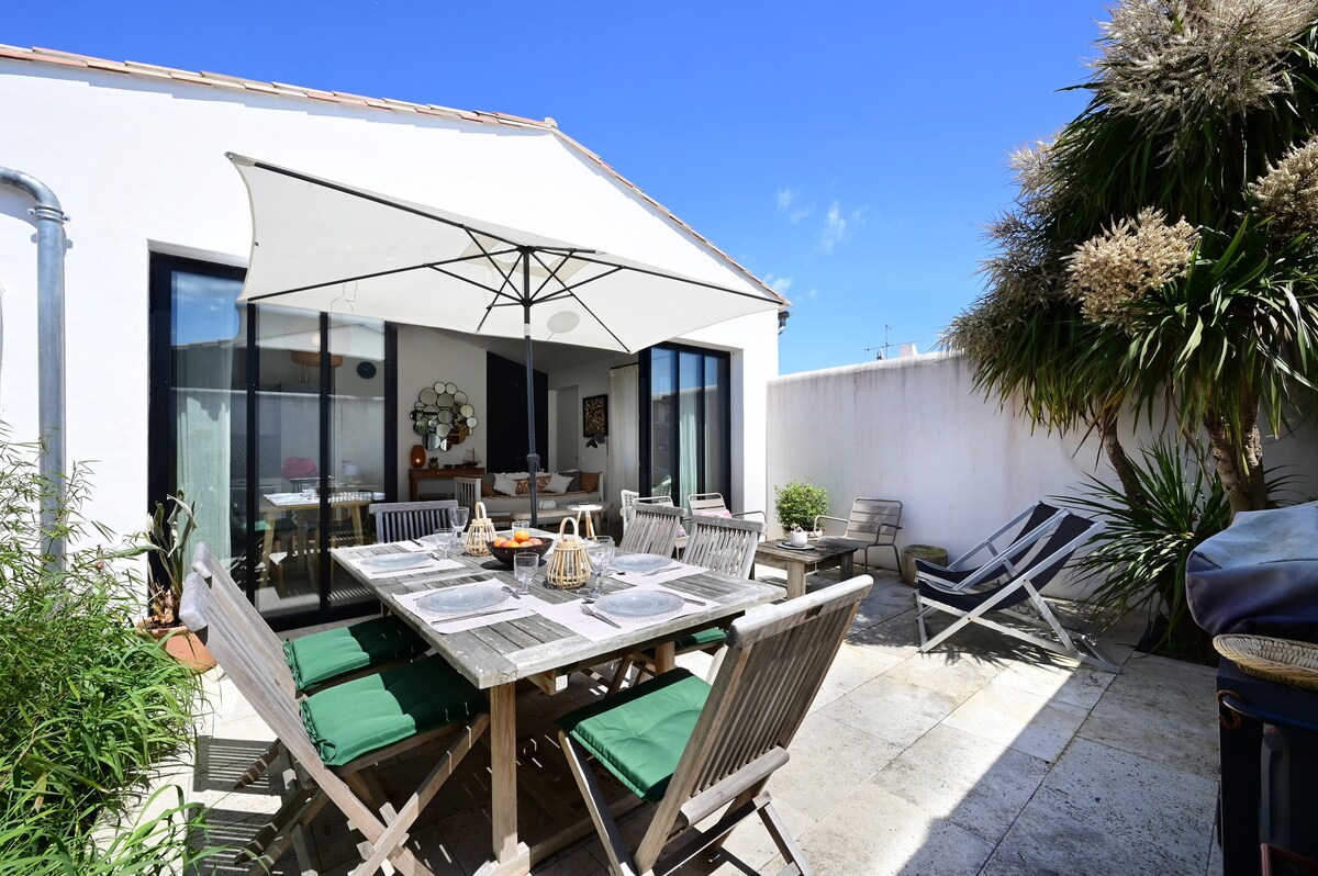 Charmante maison familiale de style Rétais pour 6/8 personnes au cœur du village, à proximité de la plage « la côte sauvage », des commerces, restaurants et du marché à coté de l'église. A 10 minutes en vélo de la plage surveillée « la conche des baleines » (une des plus belle plage de l’île), du célèbre phare des baleines, de l’école de voile, des cours de tennis et équitation. Pêche à pieds, proche de la forêt, des marais salants, de la réserve des oiseaux et du golf des portes en ré.