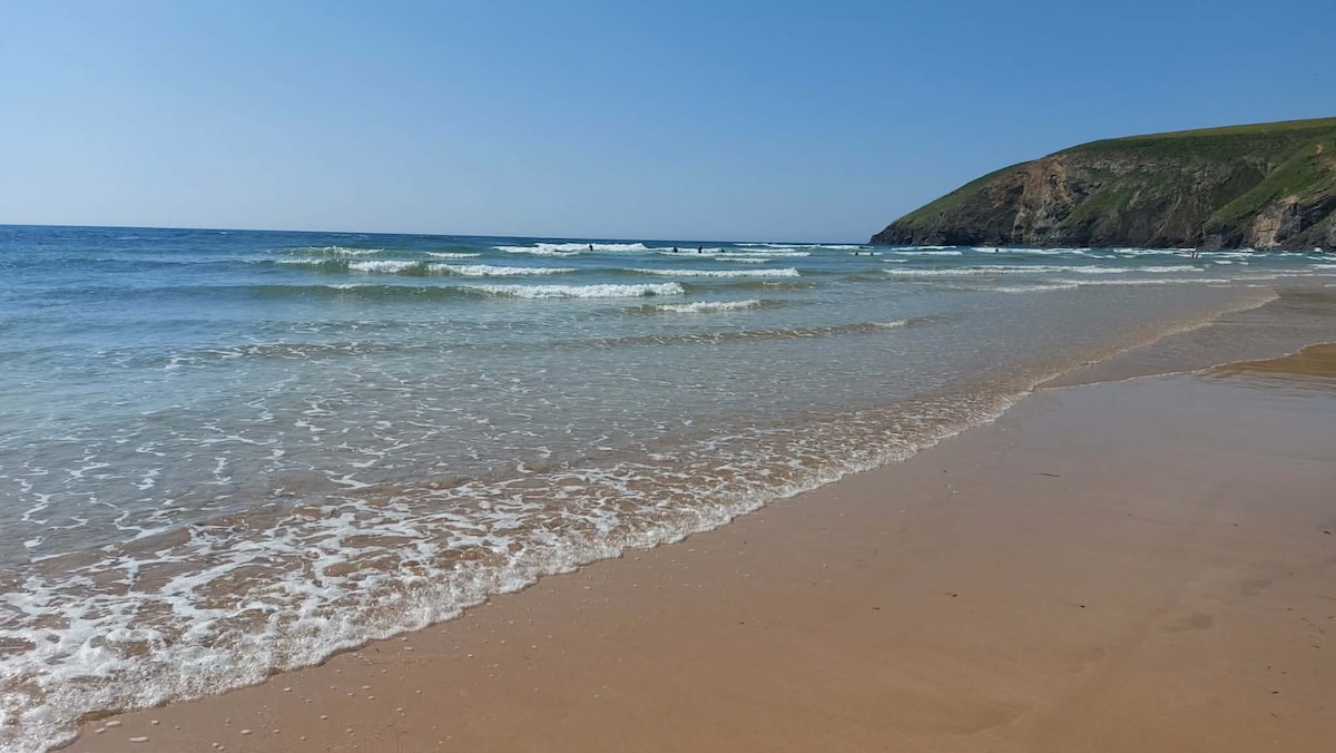 SOUTH FISTRAL COTTAGE is newly built with space and luxury in mind and is nestled in between South Fistral Beach and the Gannel Estuary. A 5 min walk to both. The cottage is alongside our bungalow at Pentire, with parking on the driveway. Your entrance is separate and secure. The gate opens onto an undercover deck and into an open plan kitchen lounge dining area with 55 " smart TV. The bedroom has a king-size bed built in a wardrobe and 1.5 ensuits. High-speed internet. 20 min walk to town.