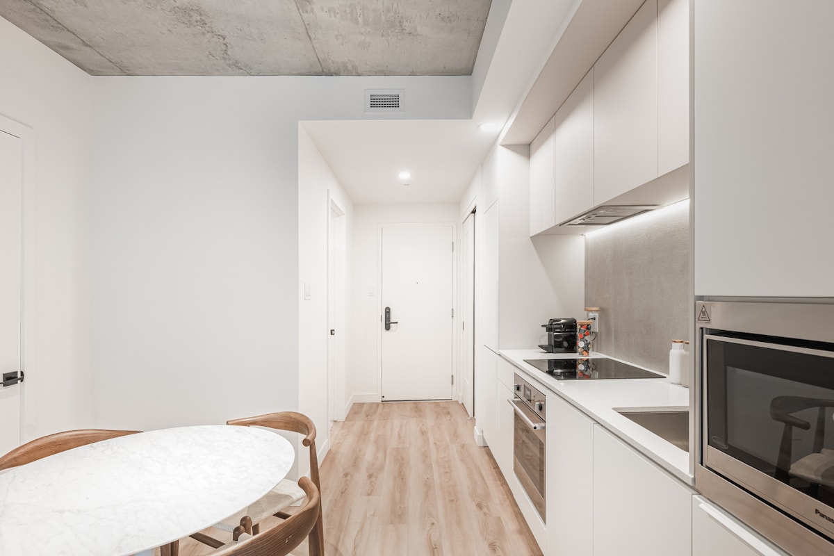 Picture a compact, immaculately kept studio nestled in the heart of downtown Montreal. Its simplicity is its charm: pristine white walls create a canvas for the room's personality to shine. Clever storage solutions tuck away belongings, ensuring every inch is utilized efficiently. Unique touches add character and warmth to the space. With its cleanliness, thoughtful design, and individual flair, this studio offers a haven of tranquility amid the urban hustle and bustle.