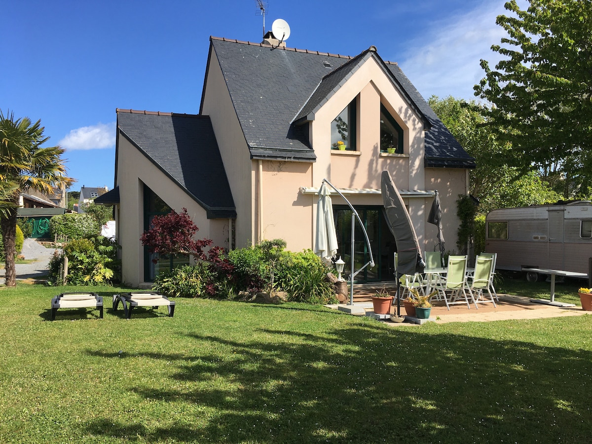 Dans un havre de verdure et de calme, à proximité du Cap Fréhel , du Fort la Latte, du GR34 , des plages de sable fin, entre Erquy et St Malo. Maison très fonctionnelle, grand jardin , pour séjour en famille ou entre amis; grand séjour, exposé est -sud -ouest très ensoleillé donnant sur terrasse ;Cuisine, arrière cuisine bien équipée , 5 chambres, 2 salles de bain, 2WC . Idéalement située près des chemins de randonnées , tous les commerces (restaurants, alimentation, )
