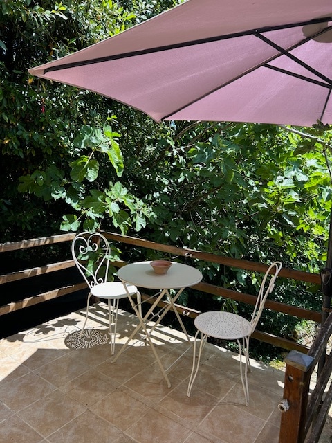 Take a break and unwind at this peaceful oasis. Set in 2 acres of beautiful park like grounds next to the beautiful Chateau de la Roussie. This 1 bed gite offers a fully fitted kitchen, double bed, bath, shower & bidet and spacious sitting area. The beautiful patio has an outside dining table, sun beds, sofa and BBQ. The stunning pool area is shared with the owners of the house. There is a 10x5m pool & hot tub. The garden offers plenty of shaded areas to sit and relax, with stunning views